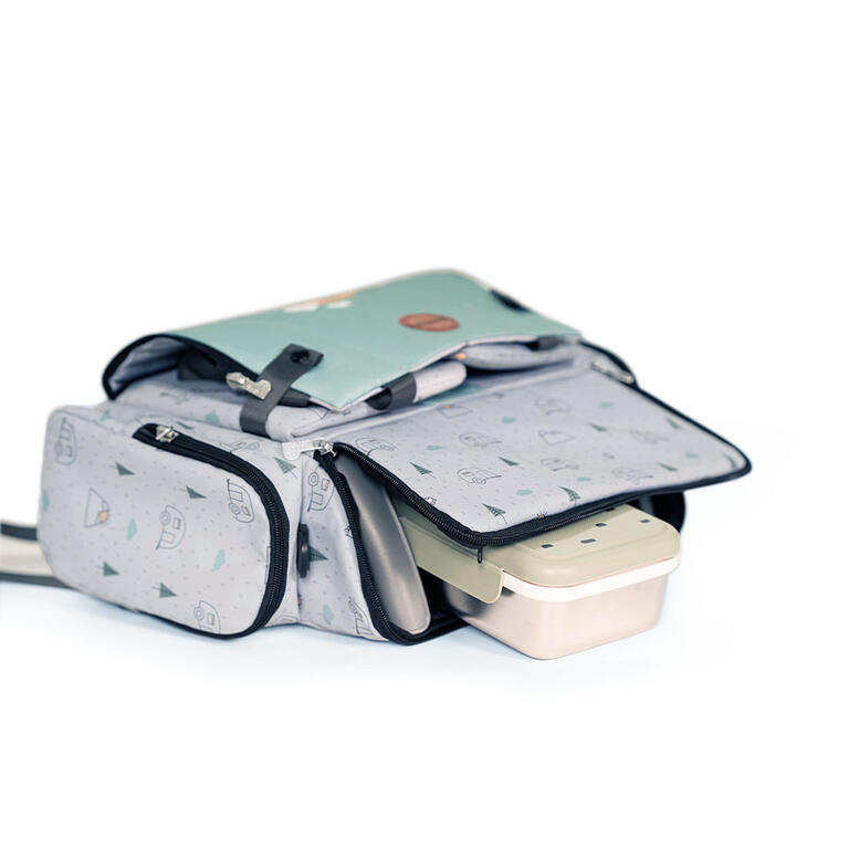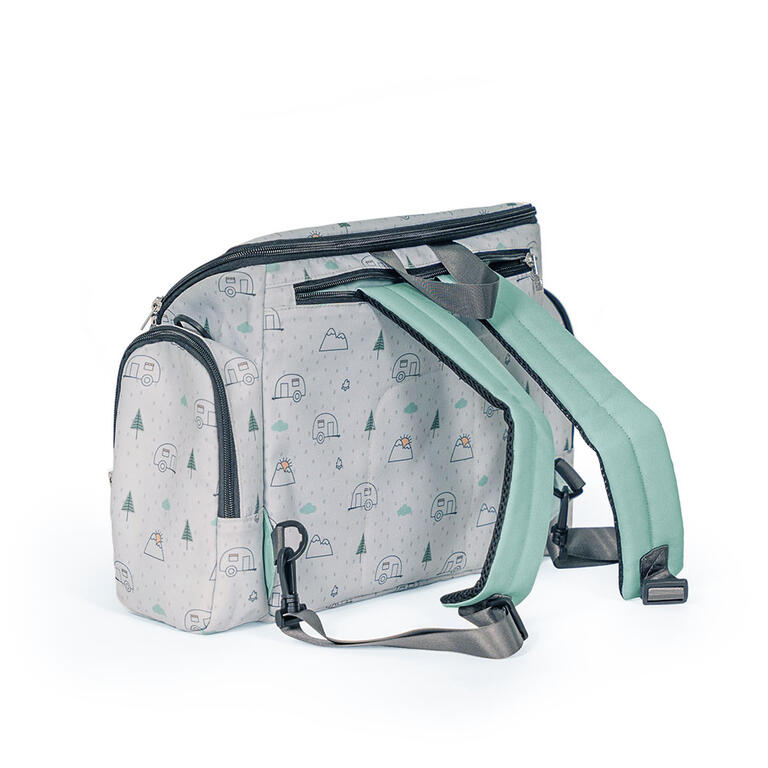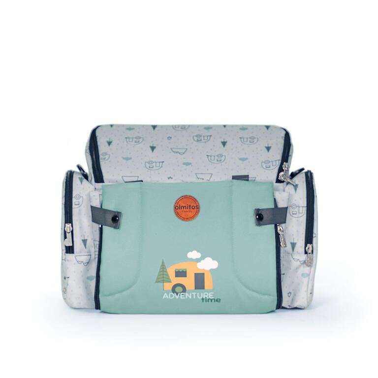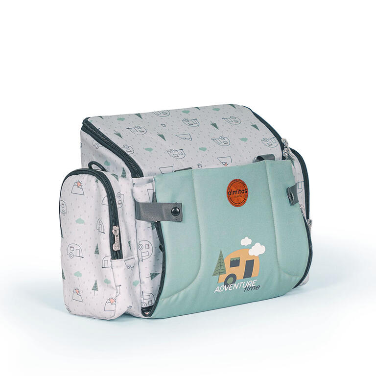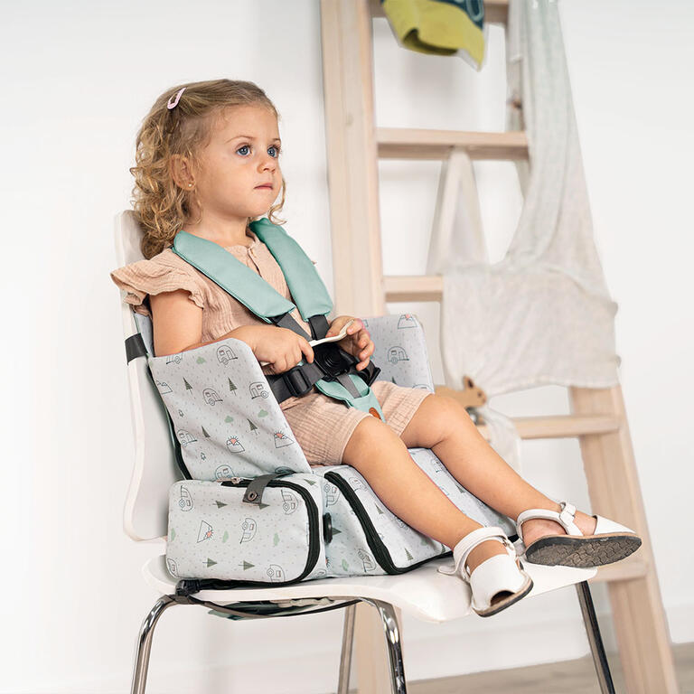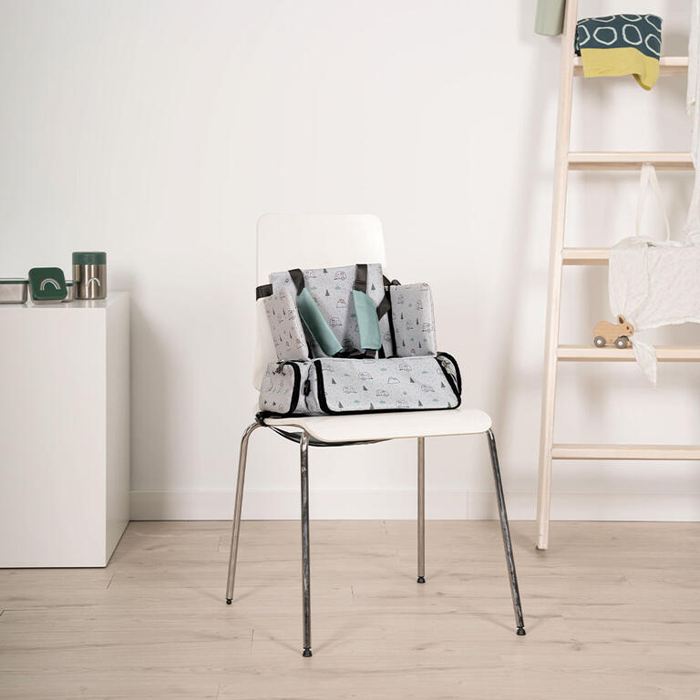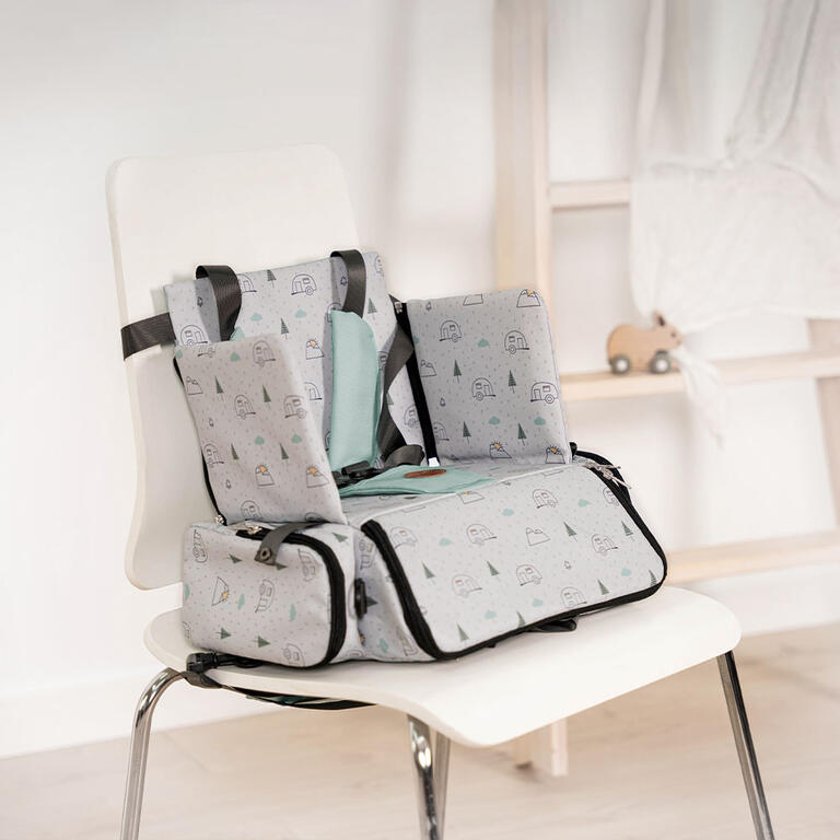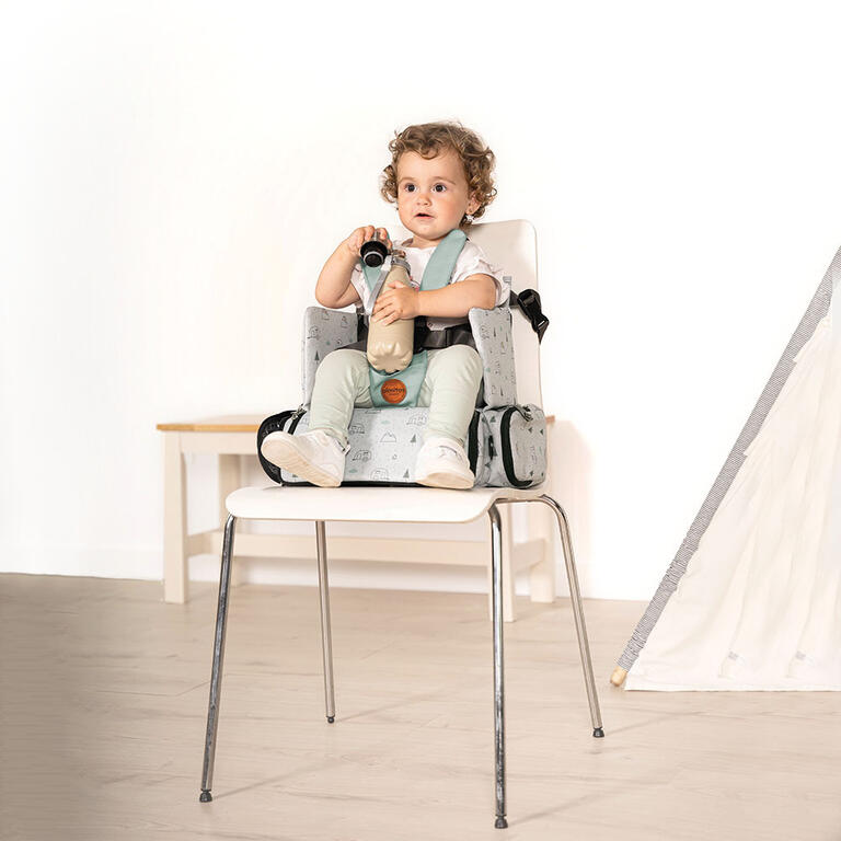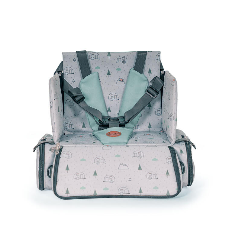 - Prácticos bolsillos para guardar baberos, juguetes, etc.