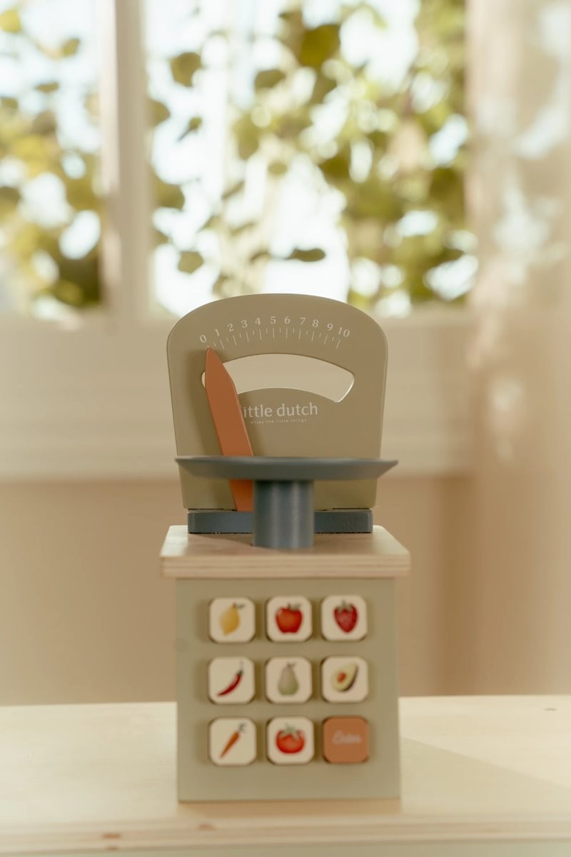 Con esta báscula de madera, los pequeños panaderos y chefs pueden pesar sus ingredientes con precisión. Coloca los productos en la báscula y observa cómo la aguja indica el peso. La báscula tiene botones reales con ilustraciones, lo que hace que jugar en la cocina sea aún más realista. ¡Perfecta para combinar con la cocina y el set de repostería para una diversión sin límites! Medidas: 13,7 x 19,4 x 9.8 cm Edad recomendada: a partir de 3 años.