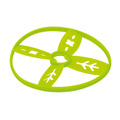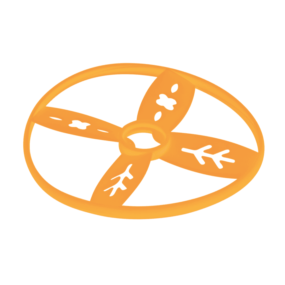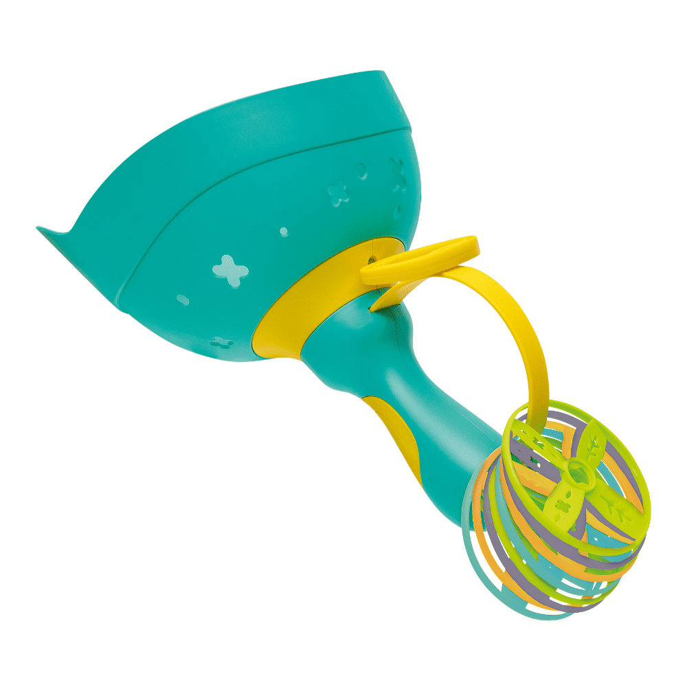 Los pequeños discos de hélice se colocan individualmente o juntos en la cesta de recogida y se lanzan al aire mediante una cuerda unida al mango antes de que la cesta los atrape.