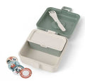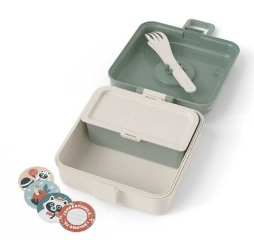 ¡La lunch box niños Snacky está llena de sorpresas! Debajo de la tapa se esconden un tenedor y una cuchara para que puedas comer como un adulto. Incluso hay una cajita extraíble con tapa, ¡para que puedas separar la comida o añadir pequeños extras!