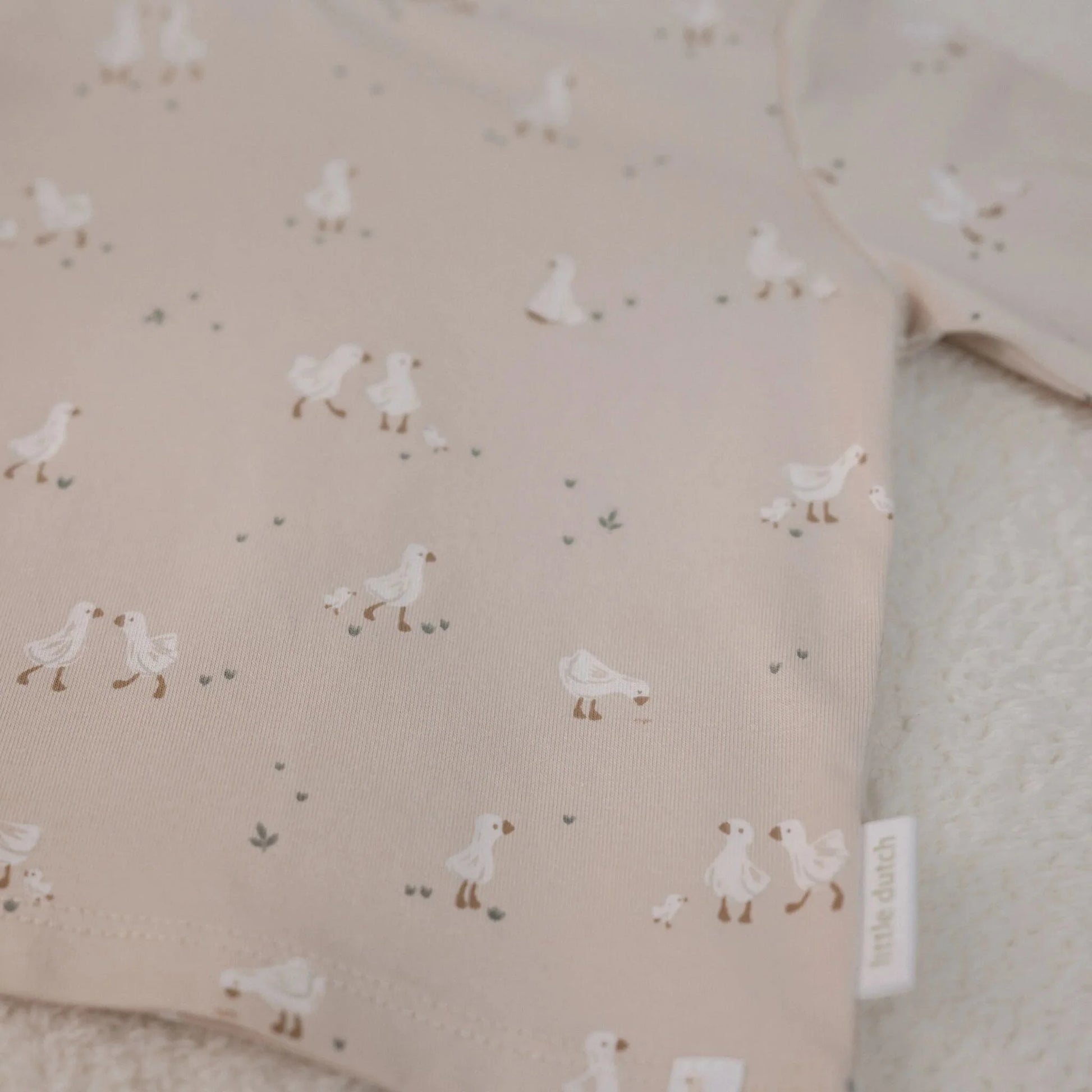 Estampado de oca en el pecho, confeccionado en algodón orgánico, certificado Oekotex. 97% algodón orgánico / 3% elastano