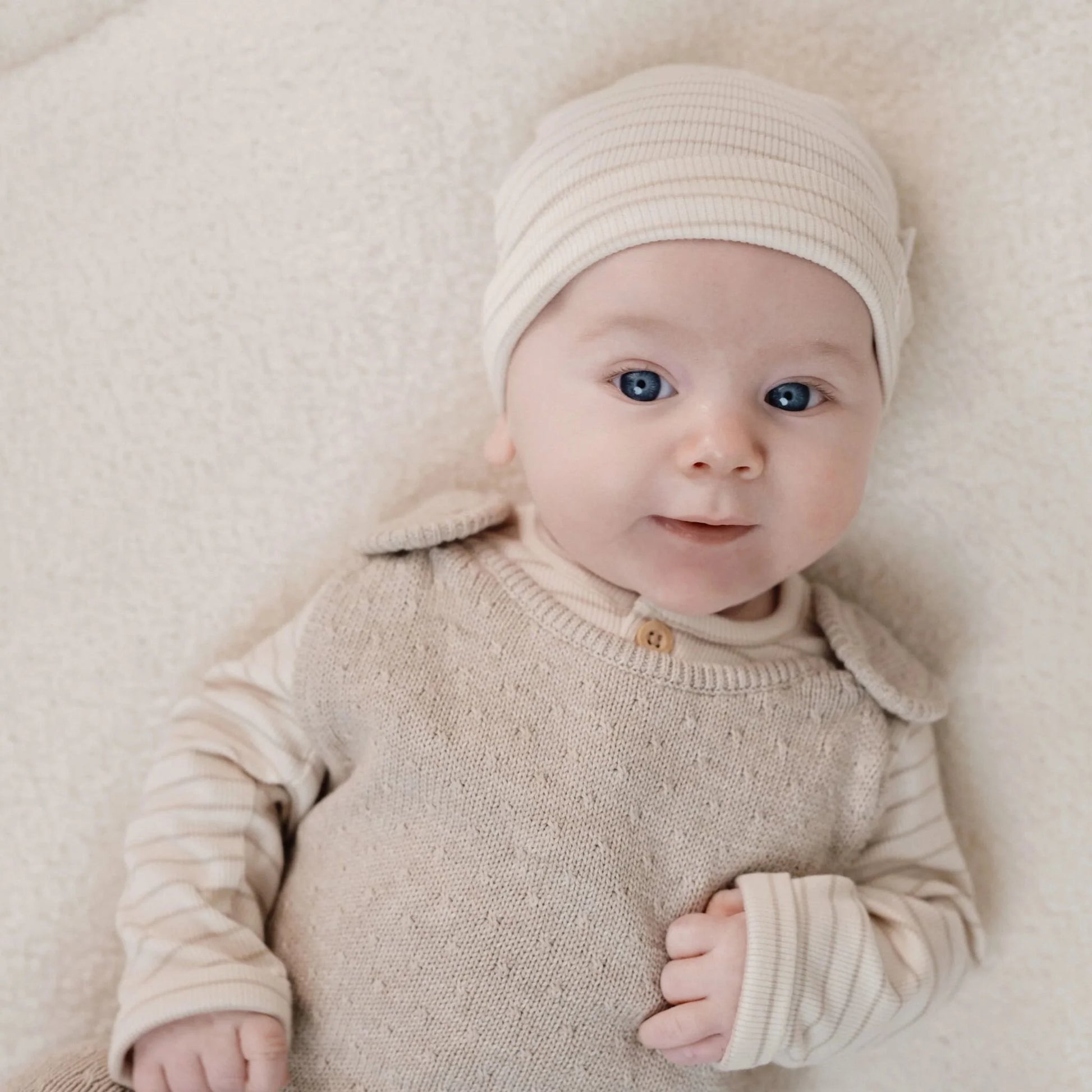 Camiseta Manga Larga Rayas Beige Suave Little Dutch