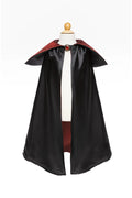 Confeccionada en lujosa tela negra y forrada con un lujoso satén rojo, esta capa irradia sofisticación y encanto. Con su distintivo cuello de vampiro, tu hijo se transformará al instante en una criatura de la noche. El cierre de velcro, adornado con una cautivadora gema roja, añade un toque extra de glamour y garantiza un ajuste seguro para horas de juego imaginativo.