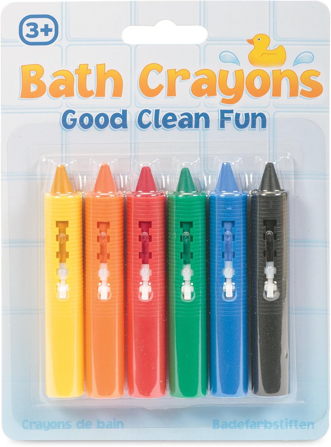 6 Colores borrables para utilizar en superficies como bañeras, azulejos, etc. haciendo del baño el momento ideal para jugar a pintar.