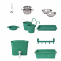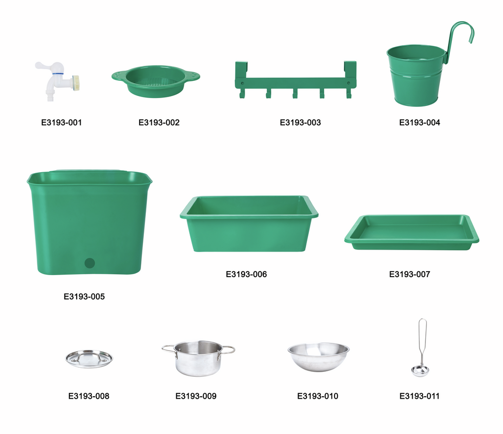 Disfruta de los días soleados con esta cocina al aire libre. Esta cocina incluye todo lo necesario para preparar deliciosa comida con barro como un tanque de agua, un grifo, un fregadero, fuegos y un horno. Además, puedes colgar las dos macetas con los ganchos y tener un pequeño jardín.