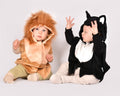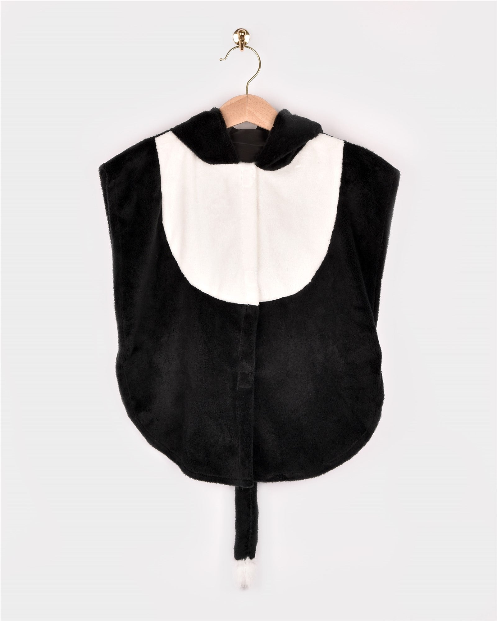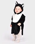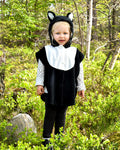 Disfraz de gato con orejas y cola. Con cierre de velcro en la parte delantera.
