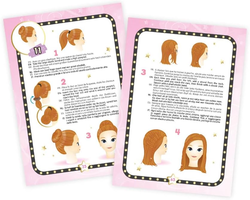 - Instrucciones ilustradas a color con 30 peinados explicados paso a paso.