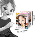 - Una cabeza para peinar y numerosos accesorios: un torno de soporte, un cepillo, un peine, ocho pasadores planos, dos gomas gruesas, tres piezas autoadherentes, treinta gomas pequeñas, un moño postizo, una cinta del pelo con flores, un pasador con cuentas, dos clips de extensiones de pelo efecto tie and dye, una goma espiral, un moño con lazo.