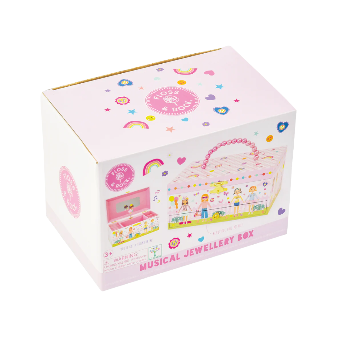 El FLOSS & ROCK Joyero Musical Best Friends es el regalo perfecto para las pequeñas soñadoras que adoran la magia de la música y los tesoros especiales. Con un diseño adorable lleno de detalles brillantes y la ilustración de mejores amigas, este joyero no solo guarda accesorios, sino también recuerdos inolvidables.