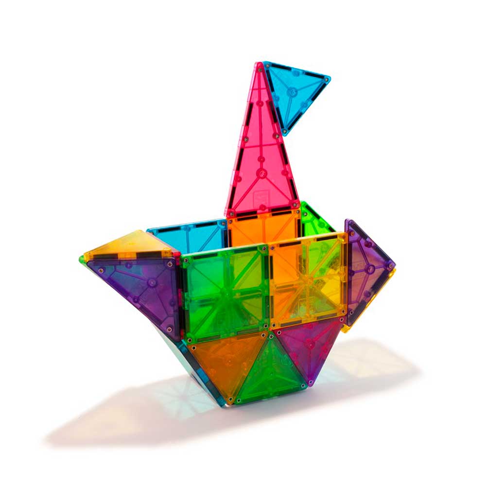 Bloques de construcción magnéticos Magna-Tiles: 32 piezas para innovar en tus construcciones. Estas piezas imantadas son una forma sencilla de que las niñas y los niños empiecen a construir estructuras en 2 y 3 dimensiones.