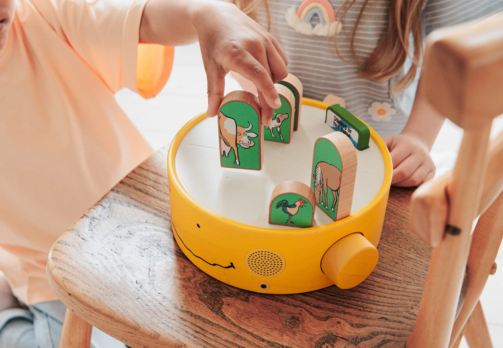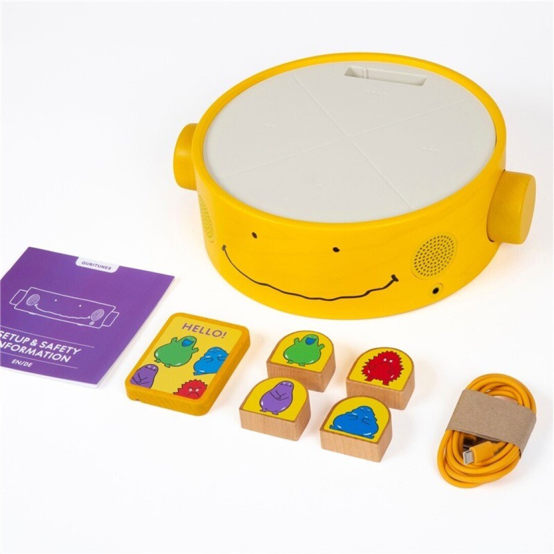 Fabricado en madera sostenible y con un diseño cuidado al detalle, Qubitunes despierta la imaginación y acompaña a los niños en su crecimiento. Solo hay que conectar un cartucho de juego y colocar los bloques inteligentes sobre el escenario para que empiece la magia: sonidos de animales, melodías, historias y retos interactivos.