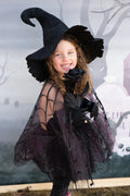 Este encantador conjunto incluye una falda de tutú negra con capas de tul y una capa con estampado de telaraña. La cinturilla es elástica, lo que garantiza un ajuste cómodo para niñas de todas las tallas. La capa a juego está hecha de malla negra con detalles de telaraña y se sujeta con velcro en el cuello. A tu hija le encantará el diseño espeluznante y a la vez elegante, y la oportunidad de convertirse en una reina araña bruja. ¡Combínala con nuestro Sombrero de Bruja Poderosa para completar el look!