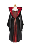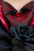 La combinación de colores negro y rojo es a la vez atrevida y elegante. El vestido presenta un corpiño de encaje rojo con escote corazón y un pequeño detalle de murciélago en el pecho. El vestido largo está confeccionado en un rico tafetán que fluye con gracia, aportando un toque dramático a cada paso. El espectacular cuello de vampiro está confeccionado en un rico tafetán rojo con varillas para que se destaque por sí solo. Se completa con llamativas mangas acampanadas para que te sientas como una auténtica princesa vampiro.