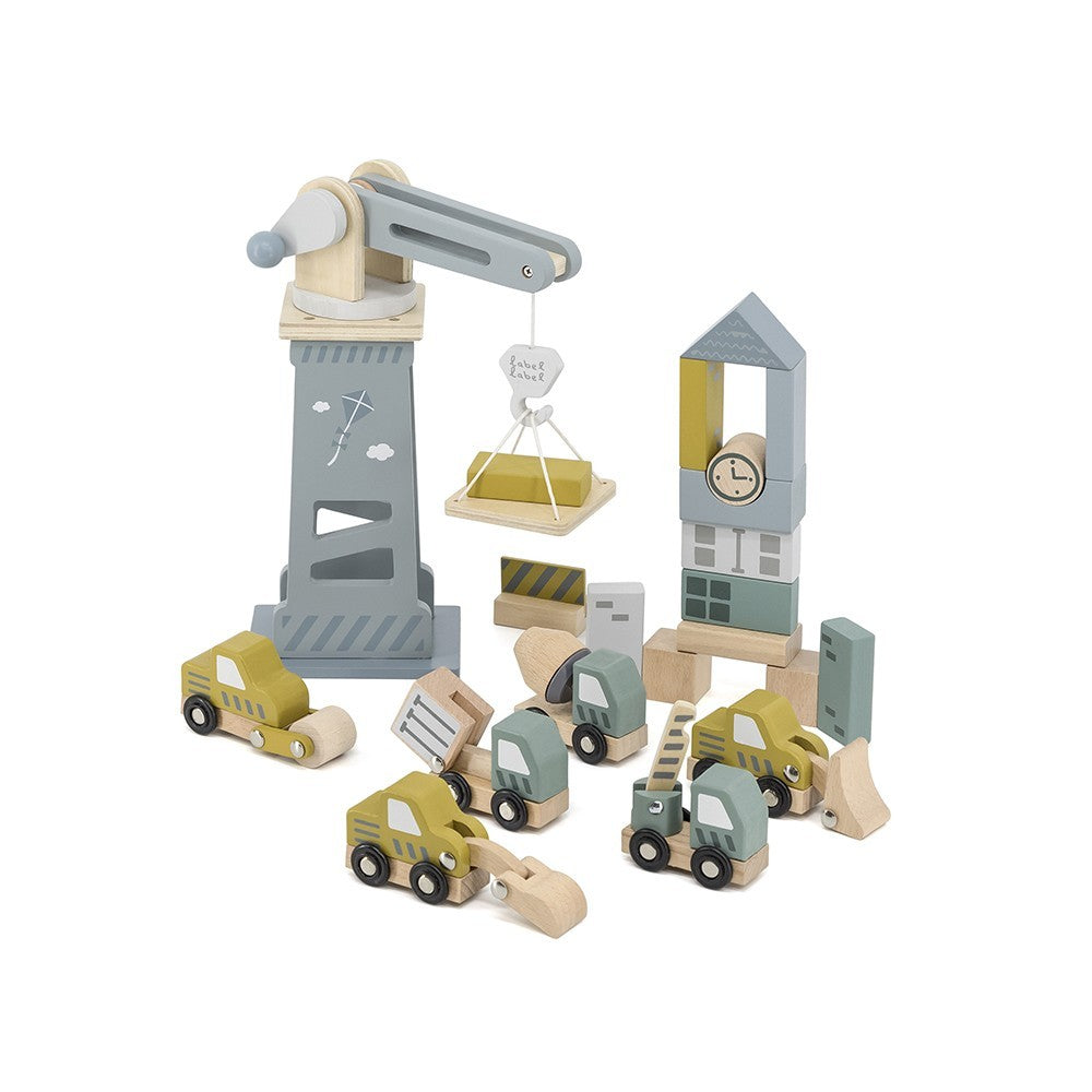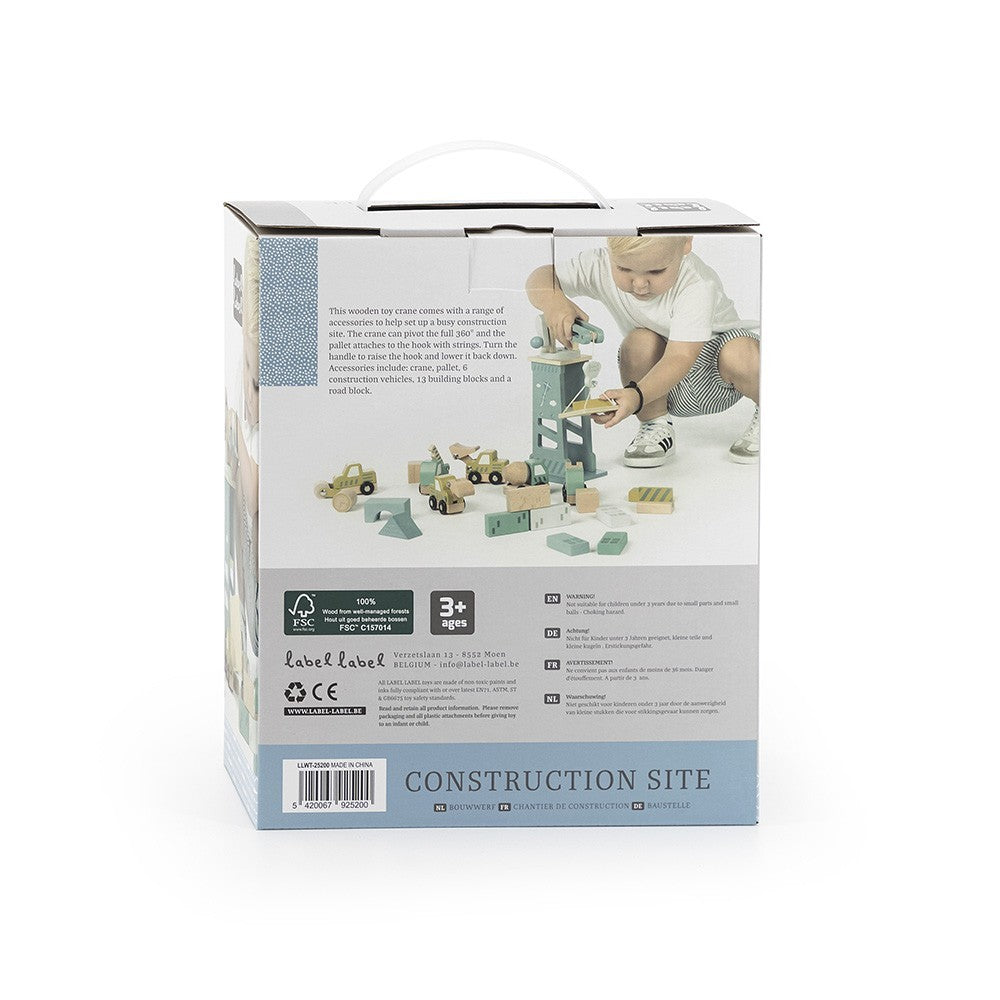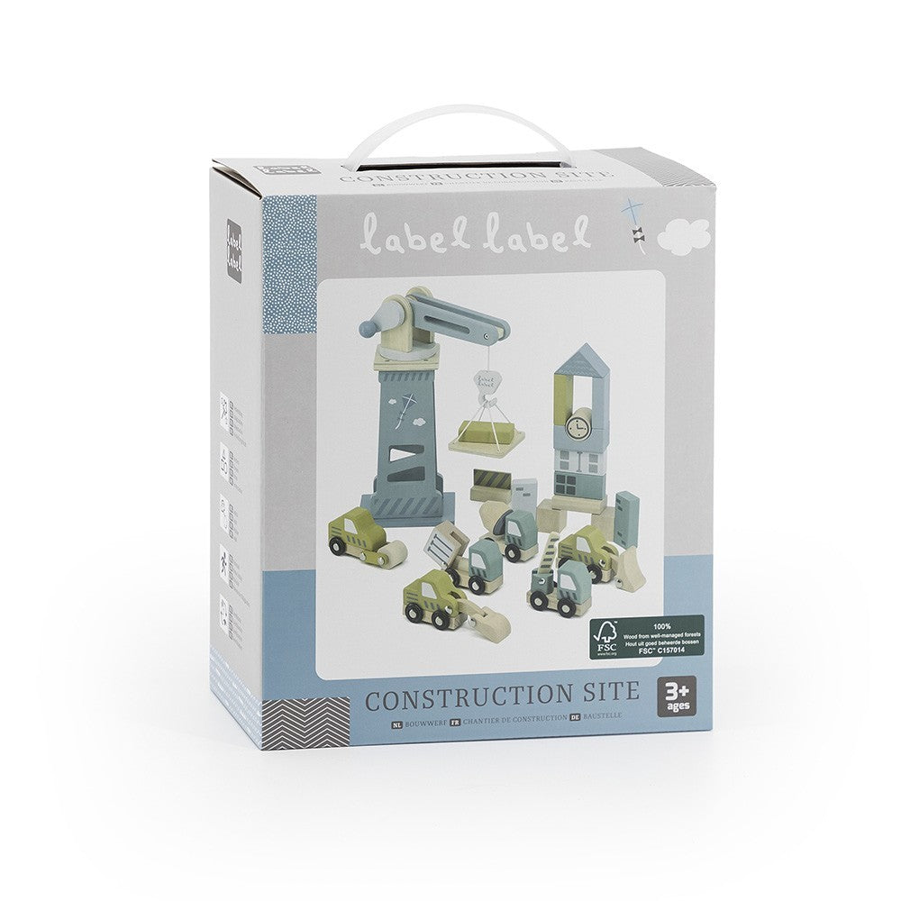 Esta obra de construcción Label Label está fabricada con madera de alta calidad certificada FSC y decorada con bonitos colores Label Label utilizando pintura al agua apta para niños.